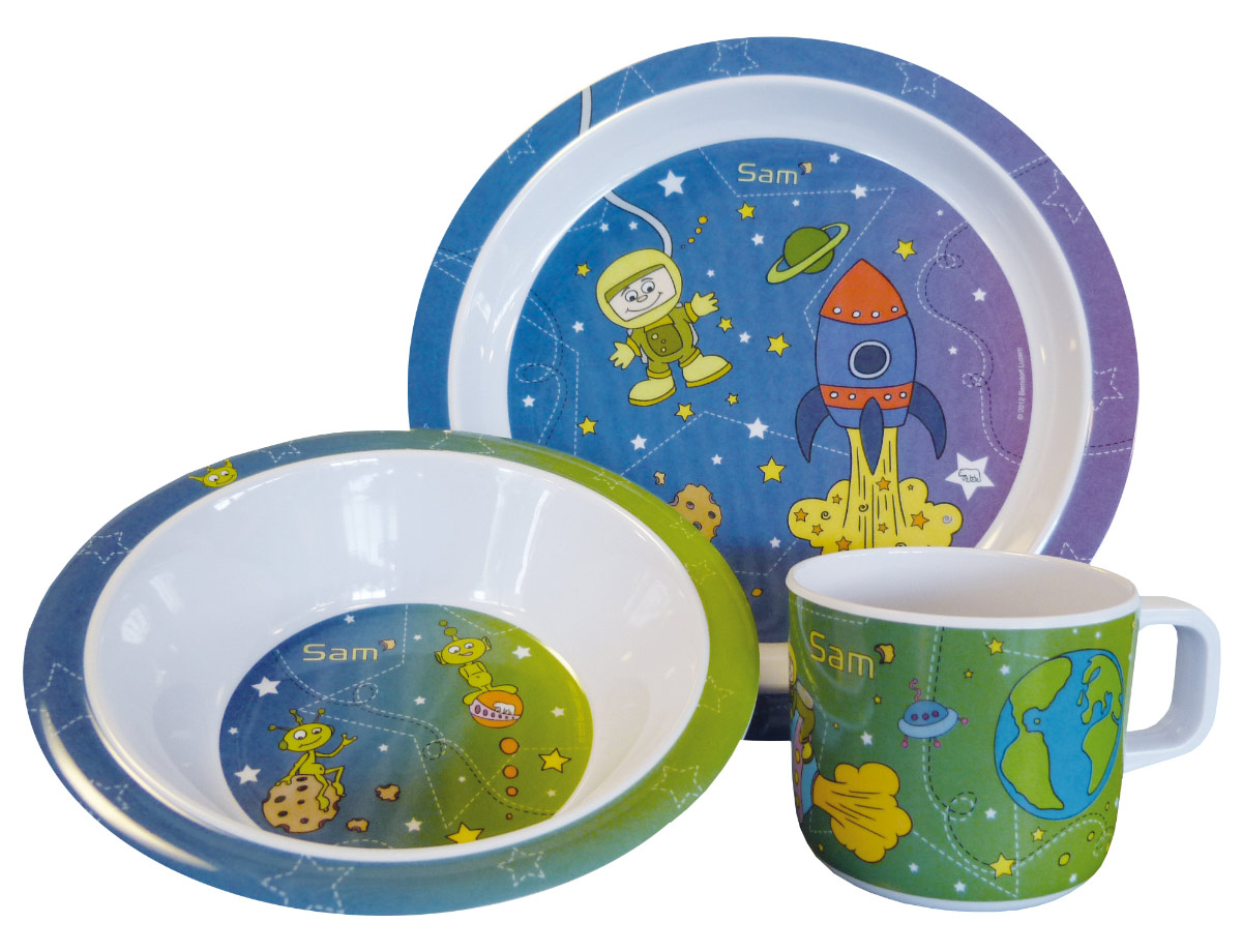 Ein Kindergeschirr/Melamin-Set der Marke Berndorf