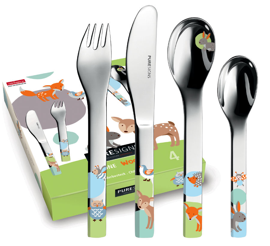 Ein Kinderbesteck der Marke PURESIGNS
